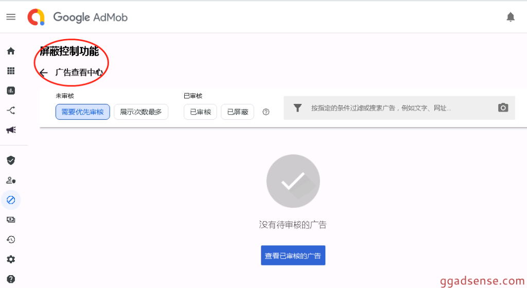 首先在admob左侧菜单栏,屏蔽控制功能,