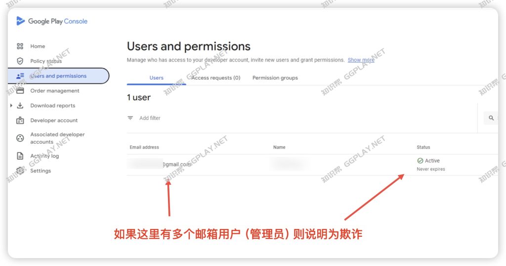 最后,尤其是新手。避免被一个空的gmail“管理员账户”给欺骗,一个开发者账户下面可以添加授权多个不同的管理员账号,每个管理员为一个单独的邮箱账号,可以拥有大多数开发者后台的权限。如下图