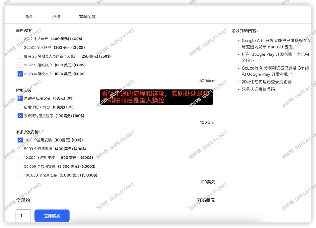 自2024年起,带包老号(有在架应用的)Google Play开发者账号被推到了高潮,因2023年底开始Google实行动态风控机制,所以大部分开发者容易在送审的过程中被直接封号。因为老号有一定的权重,所以价值就体现出来了。有关购买老开发者账号的其他文章可查看链接:Google Play开发者真老号与假老号?购买开发者账号大有学问 ,原则上我们是不推荐常规开发者去购买这种“老号”,就算是嘟囔这种专业人士有时候也会被坑,因为水真的非常深。