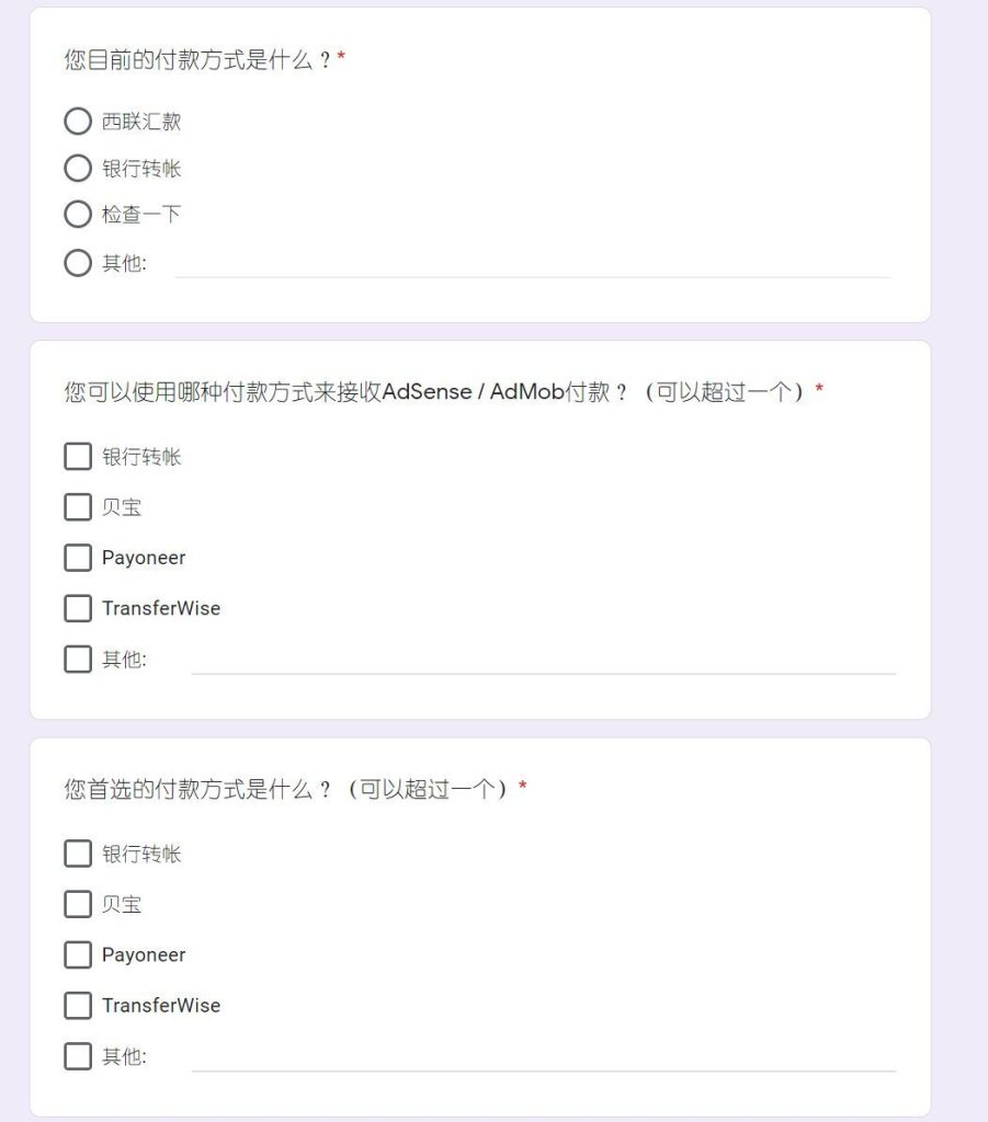 现在调查投票的付款方式基本为:银行转账、paypal、Payoneer、TransferWise