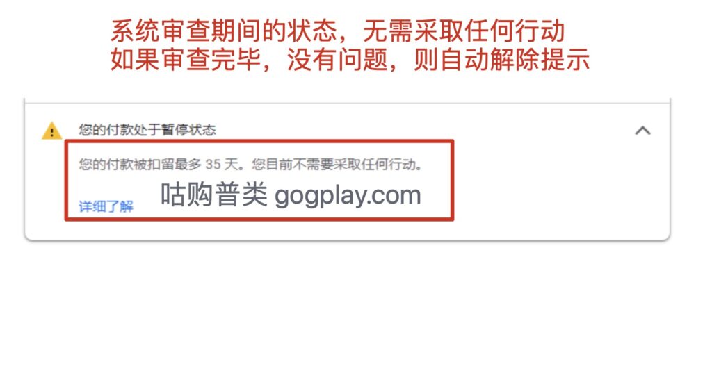 谷歌提示商家账号被审查,付款最多被扣留(暂停)35天。