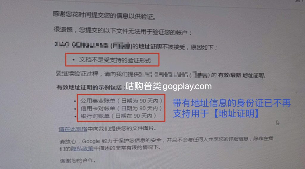 这里是咕购普类,截止2023年4月,谷歌开发者的大多数政策验证、风控验证(二次验证)都可能要验证银行对账单(地址证明),在2022年带有地址信息的身份证件是受支持的地址证明。2023年部分项目的验证已经剔除的【带有完整地址信息的身份证件】,如下图1