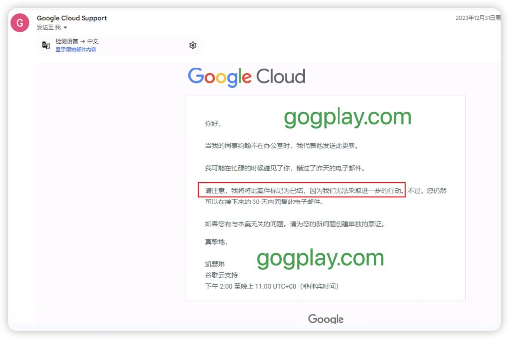 那么根据提示联系谷歌云相应的支持团队,这个问题是否可以得到解决?