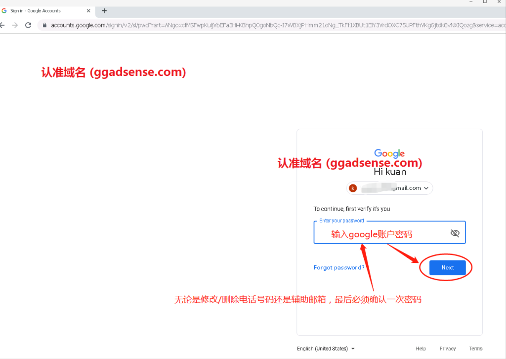 输入google账号(adsense账号)密码
